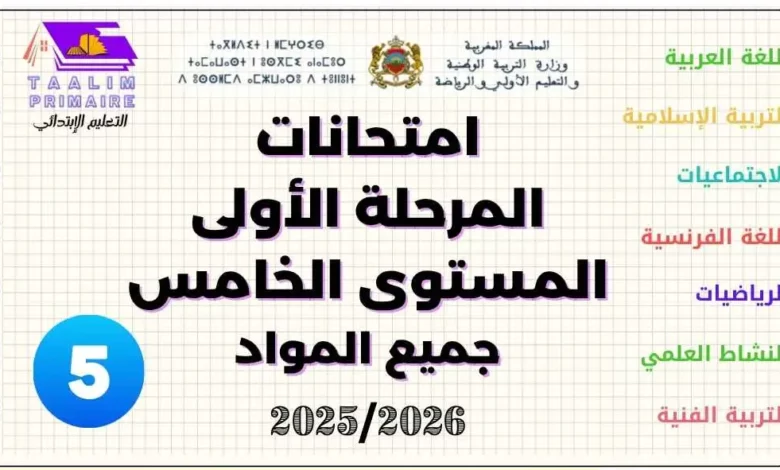 امتحانات المستوى الخامس ابتدائي المرحلة الأولى 2026-2025