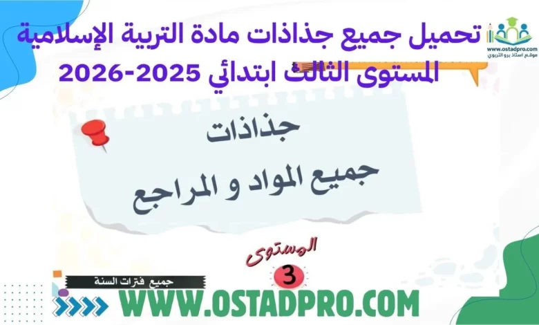 تحميل جميع جذاذات مادة التربية الإسلامية المستوى الثالث ابتدائي 2025-2026