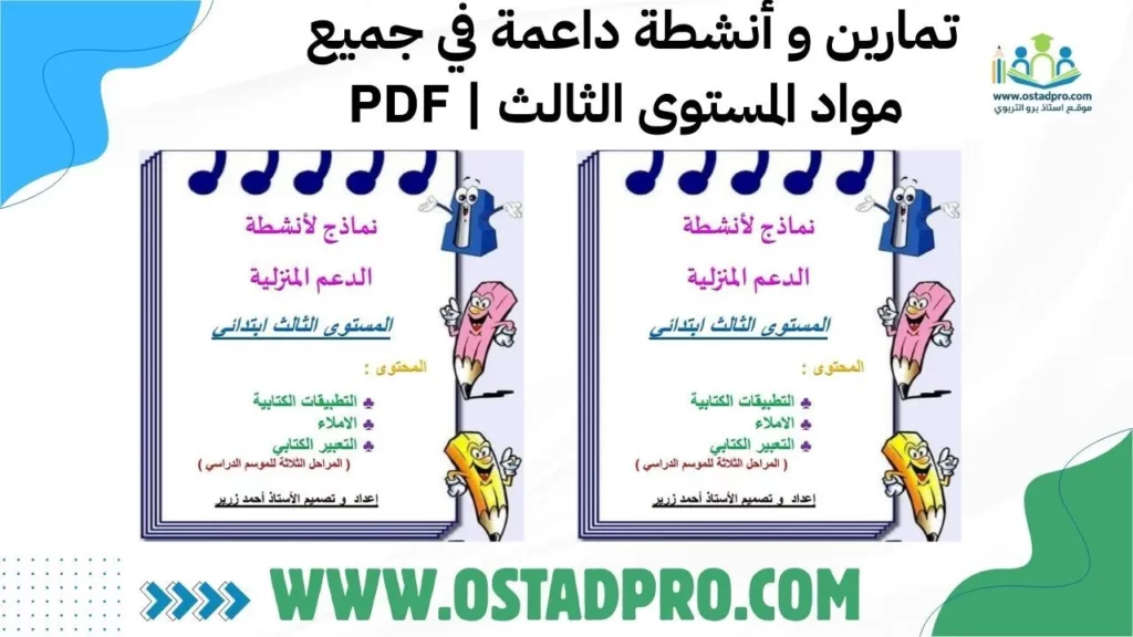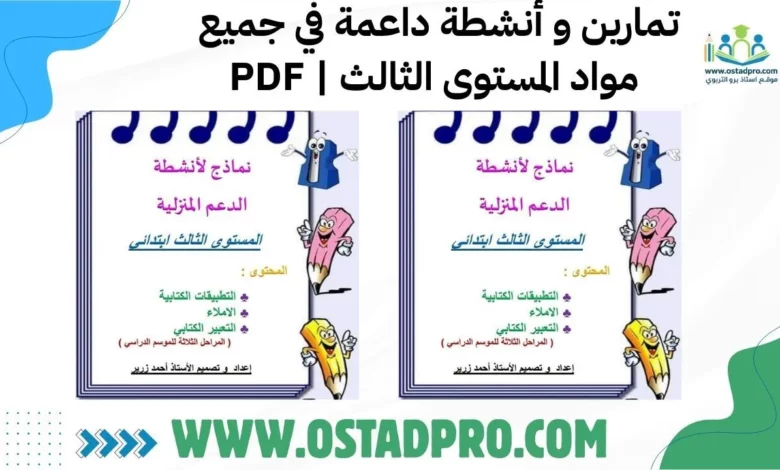 يسرنا في موقع أستاذ برو أن نقدم لكم تمارين و أنشطة داعمة في جميع مواد المستوى الثالث | PDF.