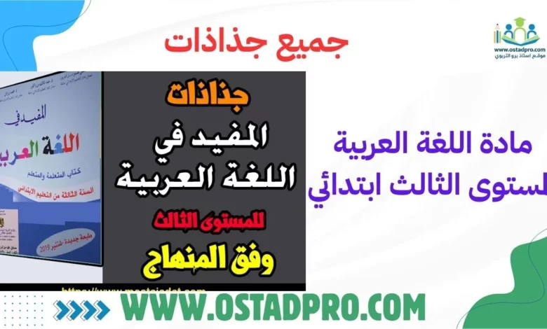 تحميل جميع جذاذات مادة اللغة العربية المستوى الثالث ابتدائي 2025-2026 وفق المقرر والمنهاج الجديد ومراجع الرسمية المعتمدة (المفيد في اللغة العربية – مرشدي في اللغة العربية) بصيغة PDF و DOC و ملف word قابل للتعديل والطباعة, جاهزة للتحميل للدورة الاولى والدورة الثانية متضمنة كل الوحدات والدروس والفقرات صالحة لهذه السنة أو قد تحتاج لتعديل بسيط.