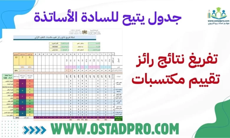 يسرنا في موقع أستاذ برو أن نقدم لكم جدول يتيح للسادة الأساتذة تفريغ نتائج رائز تقييم مكتسبات التعليم الأولي مع حساب بعض المعدلات والاحصائيات تلقائيا…