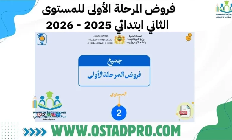 فروض المرحلة الأولى للمستوى الثاني ابتدائي 2025 – 2026