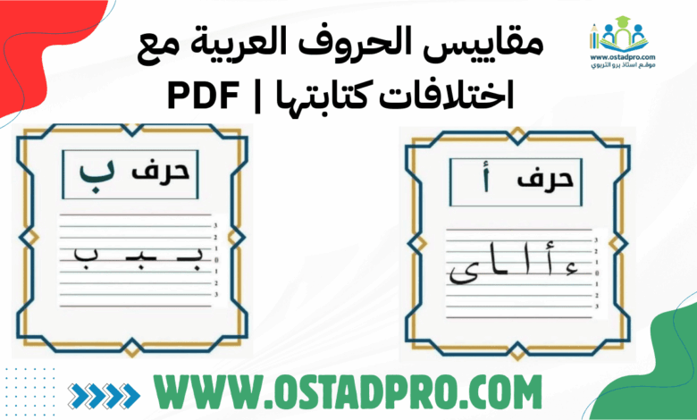 يسر موقع أستاذ برو أن يقدم لكم في هذا الموضوع الجديد وثيقة مهمة حول مقاييس الحروف العربية مع اختلافات كتابتها، والتي صممت لتسهيل تعلم الكتابة الصحيحة للحروف العربية لجميع المستويات الابتدائية. هذا المورد التعليمي بصيغة PDF جاهز للطباعة ويمكن استخدامه في الفصول الدراسية أو حصص الدعم لتعزيز التعلم البصري والكتابي لدى المتعلمين.
