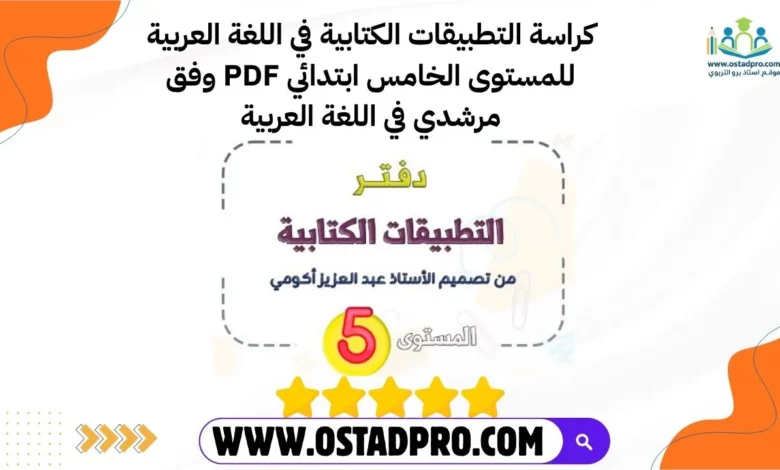 🖋️ كراسة التطبيقات الكتابية في اللغة العربية للمستوى الخامس ابتدائي PDF وفق مرشدي في اللغة العربية