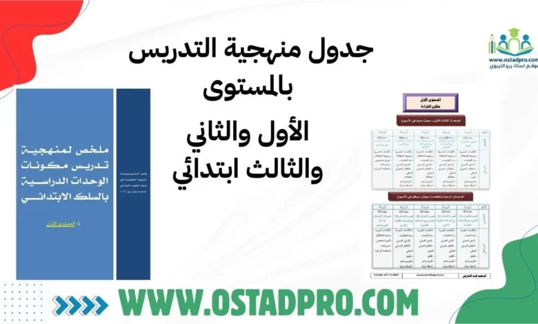 جدول منهجية التدريس بالمستوى الأول والثاني والثالث ابتدائي
