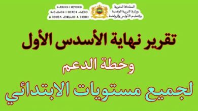 نموذج تقرير حول نتائج الأسدوس الأول وخطة الدعم – المستوى الأول والثاني مزدوج (قابل للتعديل)