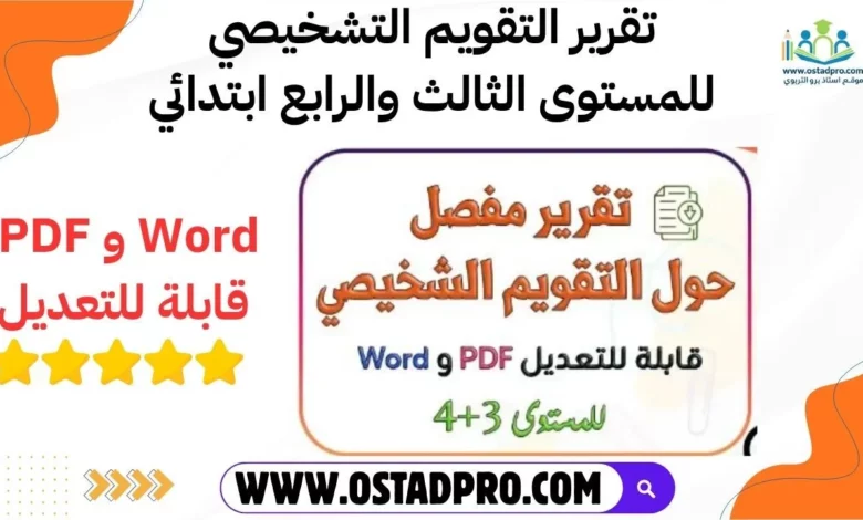 تقرير التقويم التشخيصي للمستوى الثالث والرابع ابتدائي | Word و PDF قابلة للتعديل