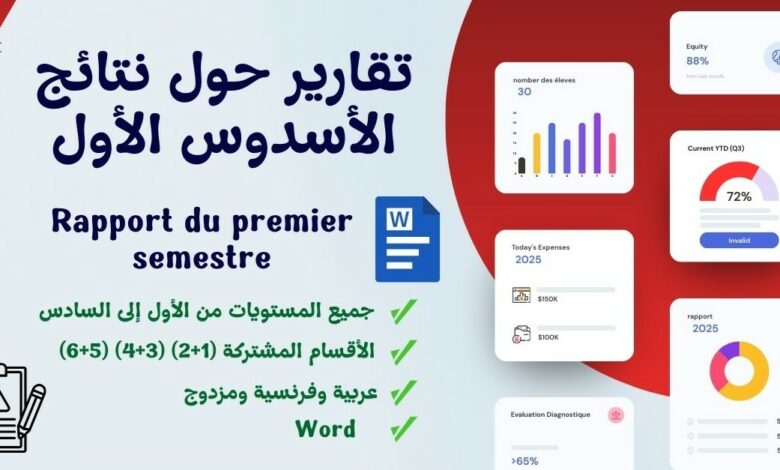 عند نهاية كل أسدوس دائما ما يبحث أي أستاذ أو أستاذة للتعليم الإبتدائي عن تقرير نتائج هذا الاسدوس لذلك يقدم لكم مشرفو موقع المناهج التربوي تقرير تشخيص وتقييم نتائج الأسدوس الأول للغة الفرنسية بالنسبة لجميع المستويات,حيث ارتأينا وضع نموذج تقرير نتائج الأسدوس فرنسية جميع المستويات 2026 في موضوع واحد ليتمكن أساتذة وأستاذات المستويات المختلفة من تحميل هذه التقارير حسب المستوى الذي يتم تدريسه.