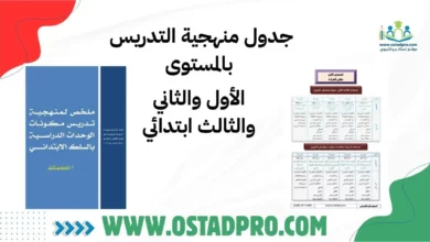 جدول منهجية التدريس بالمستوى الأول والثاني والثالث ابتدائي