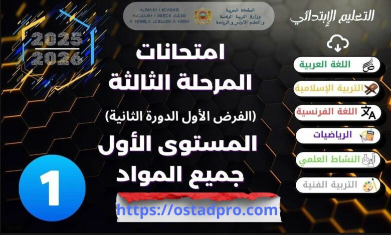 يسرنا في موقع أستاذ برو التربوي أن نقدم : فروض المرحلة الثالثة المستوى الاول 2025 – 2026 جميع المواد